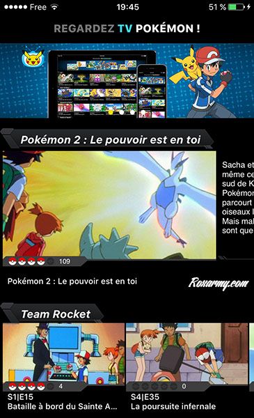 Ceux qui veulent découvrir ou se replonger dans l’univers Pokémon peuvent télécharger l’application mobile gratuite TV Pokémon pour Android et iOS qui permet de voir les épisodes de la première saison Pokémon : La Ligue Indigo, jusqu’à la plus récente Pokémon : la série : XY.