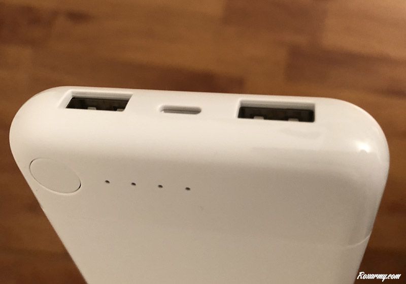 2 ports USB sont prévus à cet effet. le premier à 2.4 A est destiné à la recharge rapide. Il parvient à passer la batterie d’un iphone 8 de 5 à 100% en 2 heures, le second à 1A nécessite 2 fois plus de temps tandis que la charge de la batterie s’effectue via son port ligthning en un peu moins de 6 heures.