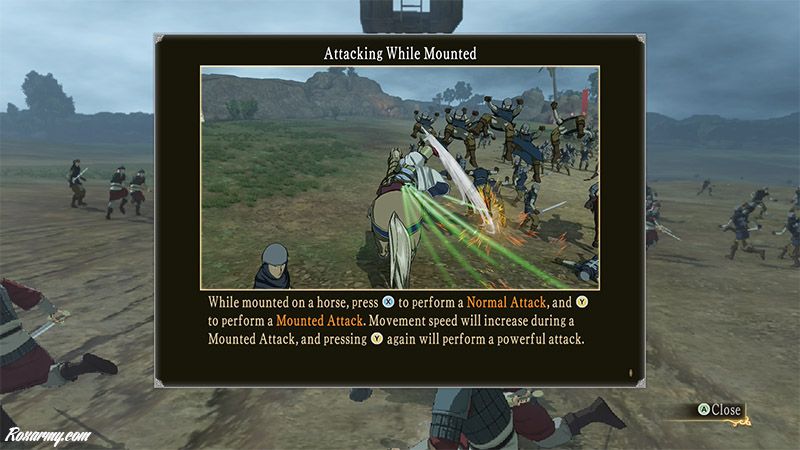 L’aventure démarre en pleine bataille avec Arslan aux commandes de son destrier. A l’aide de flash-backs, le tutoriel permet de s’initier aux différentes actions possibles. Développé par Omega Force, Arlsan présente un certain nombre de points communs avec Bladestorm : Nightmare du même studio.