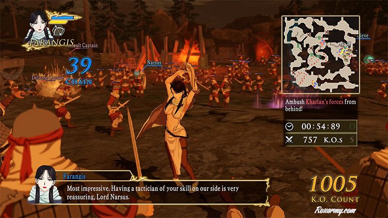 Le nombre d’ennemis est toujours aussi impressionnant et durant une bataille on est amené à contrôler successivement différents personnages. Chacun dispose d’aptitudes spécifiques comme un magicien artiste peintre, une voluptueuse archère ou encore un intrépide lancier.