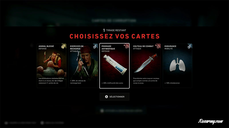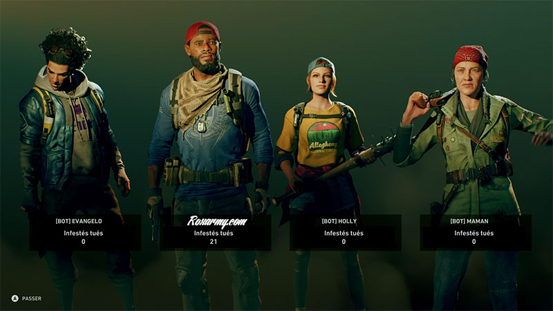 Back 4 Blood n’est jouable qu’en ligne, après connexion, il faut choisir un personnage. Chacun commence avec une arme secondaire et des talents uniques. Afin de dynamiser la jouabilité intervient un système de cartes choisies par le joueur et/ou imposé par l’IA qui altère positivement ou négativement certains paramètres du jeu.