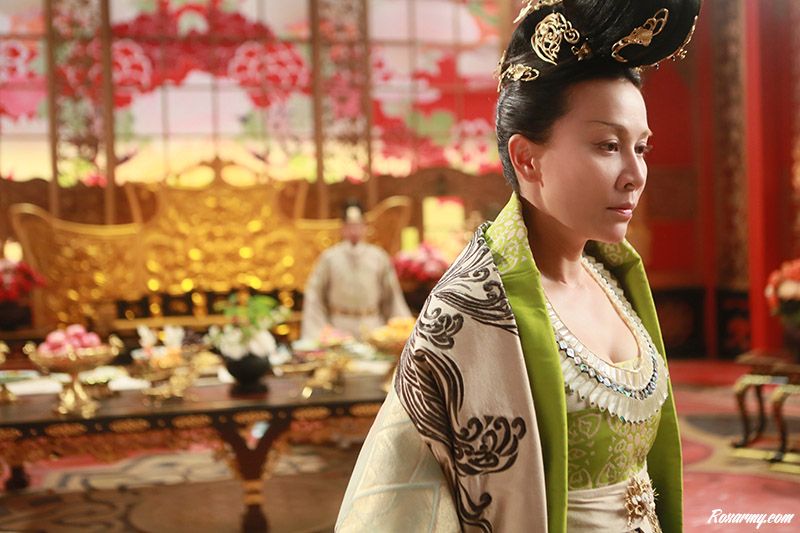 Pour la troisième fois Carina Lau est parfaitement à l’aise en impératrice Wu manipulatrice avide de pouvoir et victime de son obsession. Dans la véritable histoire de la dynastie des Tang, la démagogie l’a poussé à distribuer son Sutra c’est à sa propre version de l’équivalent de la Bible pour légitimer son ascension.
