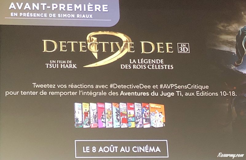 Pour son avant première au Club de l’Etoile organisée avec Sens Critique, l’animation a été confiée à Simon Riaux journaliste à l’Ecran Large qui a réussi l’exercice avec une rafraichissante auto dérision. N’ayant pu faire le voyage, Tsui Hark a fait part en vidéo de son enthousiasme et de sa fierté pour cette occasion.