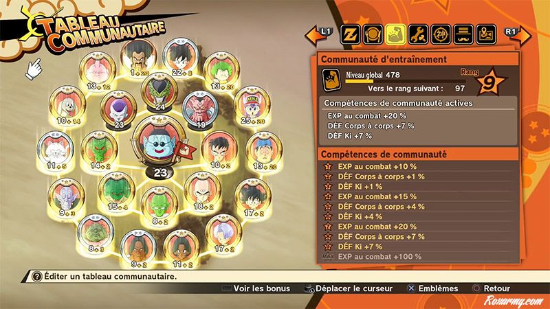 L’arbre de compétence à développer et le tableau communautaire consistant à combiner les âmes des différents personnages pour améliorer son rang visent à proposer à la jouabilité de Dragon Ball Z : Kakarot autre chose que le seul martelage des commandes d’attaques et d’esquives.