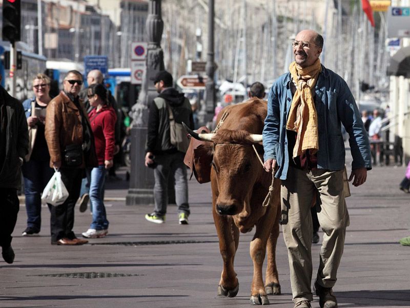 Définitivement marquée par Henri Verneuil, l’imagerie d’un homme parcourant les routes de France accompagné d’un bovidé présentait encore plus de risques.