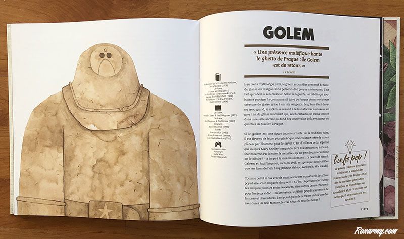 Repartis en 5 chapitres : Dans la forêt, Créatures ailées, Légendes du cinéma, Monstres venus d’ailleurs, Sorcière et Creatures du mal, pas moins de 100 monstres culte sont décrits avec des mots simples et clairs, des anecdotes et en annotations des références cinématographiques, vidéoludiques et littéraires.