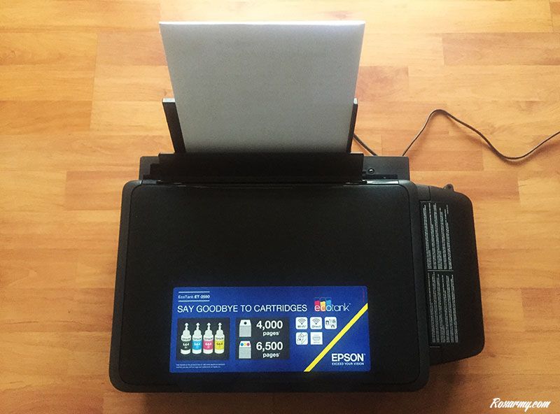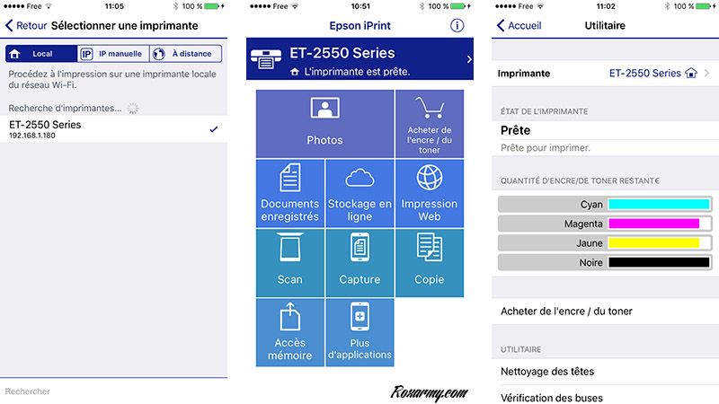 Comme des touristes, il s’agissait faire le tour de Paris en bus, de prendre des photos pour ensuite les imprimer depuis un smartphone avec l’application i-print. Pour compléter l’expérience, l’ET-2550 de test a pris 45 secondes pour imprimer sans fil en A4 la page d’accueil de Roxarmy.