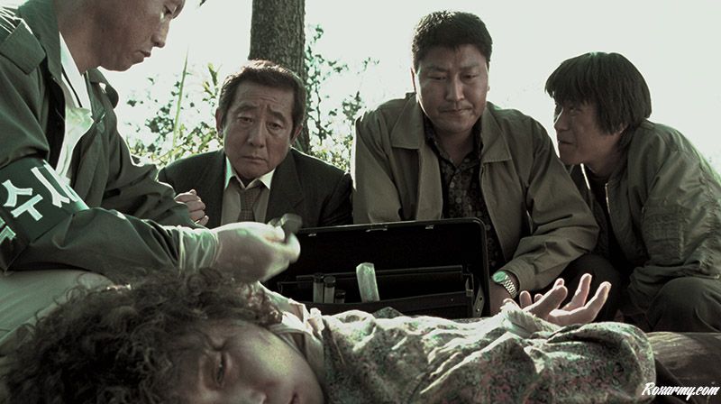 Bong Joon-ho en profite pour dépeindre les inégalités sociales qui sévissent entre la capitale et la province de son pays. Au passage, il n’épargne pas vraiment la police, brocardant sa violence, son manque de moyens, ses méthodes plus que discutables.