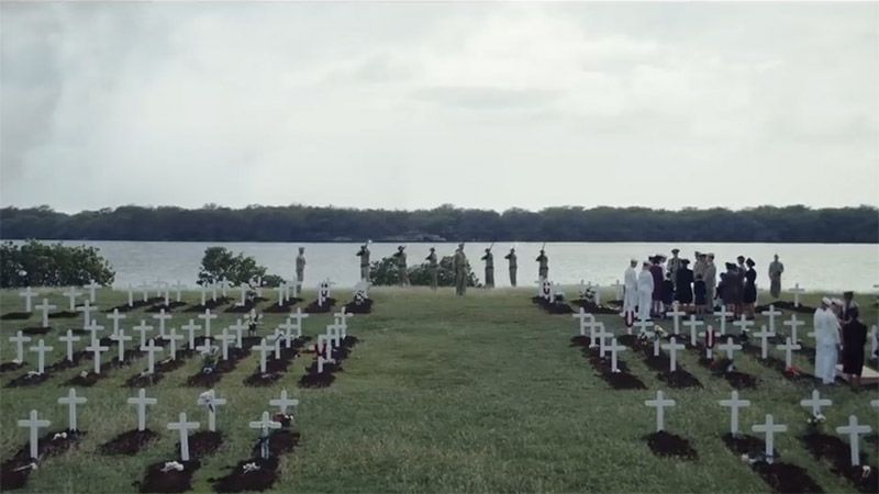 Le film met en avant le rôle de chacun des protagonistes de cette guerre et traite avec beaucoup de respect l’armée japonaise : un hommage est d’ailleurs rendu au deux camps à la fin du film. Plutôt qu’un long texte indigeste, l’épilogue est d’ailleurs très bien réalisé : plan fixe sur chaque comédien accompagné de la photo de la personne qu’il incarne ainsi qu’un petit texte.