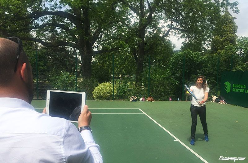 Nous avons ensuite été invités à rejoindre le cours Sebastien Grosjean afin de tester le PIQ. Ce bracelet connecté enregistre tous les mouvements qu’il reconnait comme des gestes de tennis puis transmet ces informations à l’application PIQ pour qualifier votre style, votre vitesse d’exécution et l’effet inculqué à la balle.