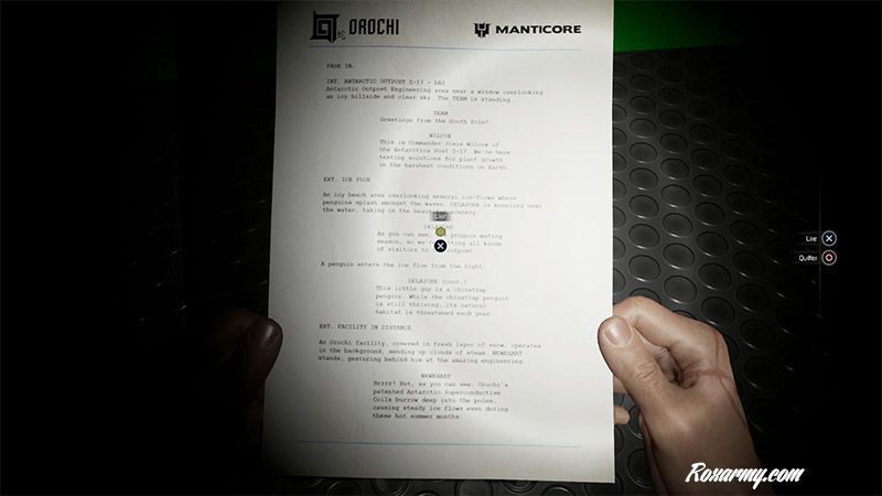 Que ce soit sur des ordinateurs, des post-it, des lettres ou des rapports, Moons of Madness regorge de messages qu’il est recommandé de lire pour une bonne compréhension de ce qui se trame. Shane dispose d’un bioscope, une sorte scanner portable permettant de se connecter sans fil aux serveurs de la station.