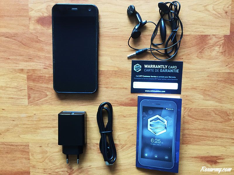 IMG_0852En carton renforcé et habillée de noir, la boite présente sur sa face avant la photo du smartphone affichant le logo MTT et juste en dessous l’url du site internet maison. A l’intérieur, on trouve l’Ideal, un manuel d’utilisation, la carte de garantie, un câble et un chargeur USB, des écouteurs.