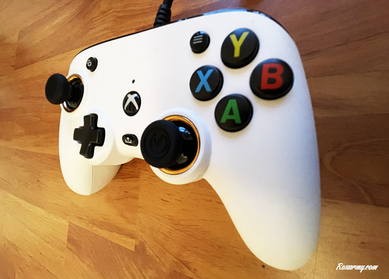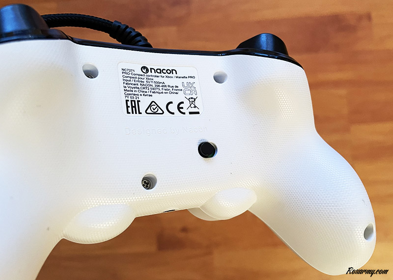 Avec ses courbes agréables et ses halos autour de chaque stick, le design de la Pro Compact est facilement identifiable en tant que produit Nacon. Par ses dimensions de 154x97x48mm pour un poids de 203 g, mais aussi un câble USB long de 3m elle se distingue immédiatement des canons de la manette Xbox sans fil standard.
