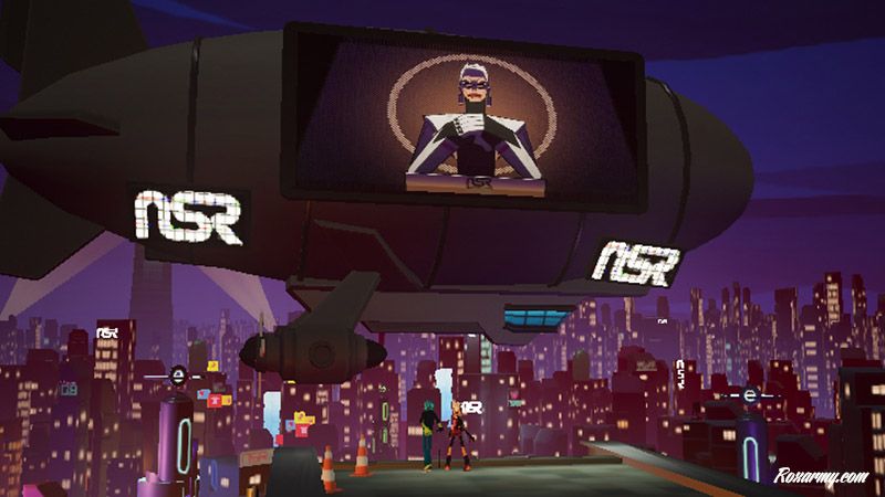 Du nom du label oppressant la ville, No Straight Road est un jeu d’aventure action de type combat de boss qui emprunte quelques mécaniques au jeu de rythme. On peut voir dans la lutte que mènent le duo contre le monolithique NSR une parabole applicable au cinéma, dans les nouvelles technologies et même dans le jeu vidéo.