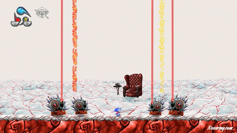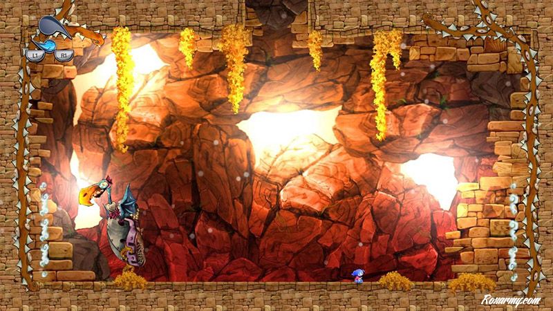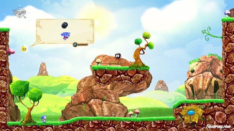 Le jeu débute par un tutoriel dans une langue comparable à celle des lapins crétins. Pour comprendre les instructions, les illustrations sont bien plus explicites. Très vite en plus des capacités accrues en escalade, il faut éviter tout contact avec un bestiaire original armé de pics, scies circulaires et autres joyeusetés.
