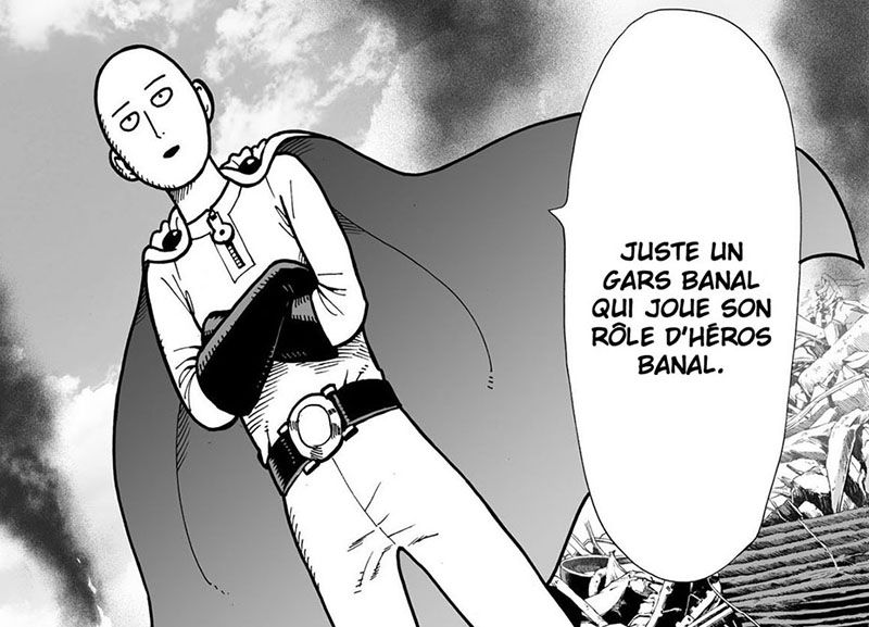 One-punch-man-saitamaLa finesse de l’oeuvre de One consiste à évoquer en filigrane et sur un ton particulièrement décalé et sarcastique de véritables questions existentielles, sociétales et même philosophiques.