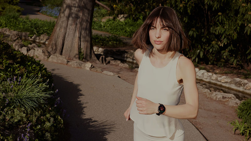 La navigation s’effectue par balayage horizontal ou vertical de l’écran. La couronne supérieure permet de revenir à l’accueil et de faire défiler l’affichage tandis que le bouton inférieur donne un accès direct aux fonctions sportives. La montre prend en charge une centaine d’activités dont six reconnues automatiquement.