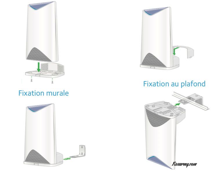 Les bases de montage épousent parfaitement le bas de l’Orbi Pro et de son satellite. Après les avoir vissées, les caches se clipsent aisément. Quelle que ce soit la nature de l’infrastructure sur un mur ou au plafond, après avoir percé les trous nécéssaires, la fixation est à la portée de n’importe qui.