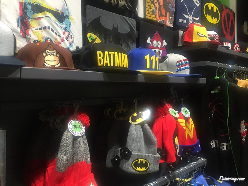 Ils trouveront également de quoi s’habiller de la tête aux pieds grâce à la multitude de tee shirts, casquettes, bonnets, écharpes ou chaussettes à l’éffigie de leurs super héros favoris qu’ils proviennent de l’écurie Marvel ou DC Comics.