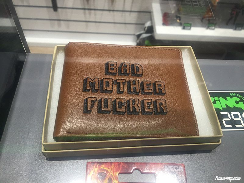 Certains objets iconiques du cinéma comme des heaumes provenant directement de la Terre du Milieu, le tranchant katana d’Uma Thuman dans Kill Bill ou encore le portefeuille Bad Mother Fucker de Samuel L Jackson dans Pulp Fiction trônaient fièrement sur les stands.