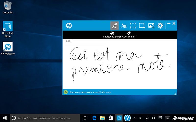 IMG_4443Le stylet alimenté par une pile AAAA est précis. L’utiliser avec HP Instant Note nécessite la présence de Microsoft OneNote. Deja préinstallé, une réinstallation de la toute dernière version  a été salutaire pour éviter un bug au lancement de l’application développée par HP.