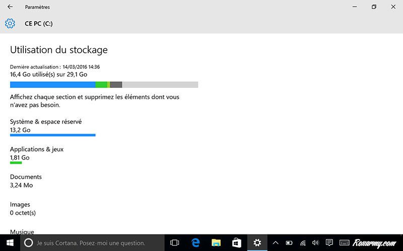 IMG_4445Bien que la prise de note ou les fichiers Word et Excel ne soient pas de gros consommateurs d’espace disque, le logement pour carte Micro SD ajoutant jusqu’à 64 go aux 32 Go de disque initiaux est le bienvenu. Avec Windows 10 et les applications installées, il ne reste que 13 Go de disponibles.