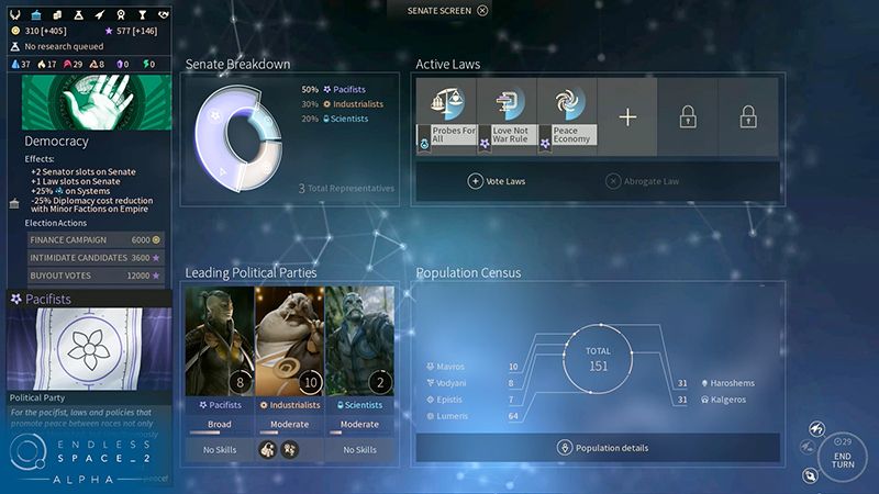 Si en début de partie la masse d’informations à comprendre est plutôt conséquente, avec la densité de son scénario, ses graphismes élaborés, sa bande son et les rebondissements procéduraux l’univers d’Endless Space 2 est vraiment passionnant.