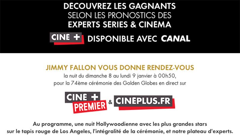 goldenglobes2017-3En attendant cette cérémonie glamour, avec Cine+ je me suis risqué au jeu des pronostics que je vous invite à consulter. Rendez-vous donc le 8 pour vérifier avec nous si les professionnels américains de la profession partagent nos avis mais surtout soyez prêt à un véritable marathon de surprises.