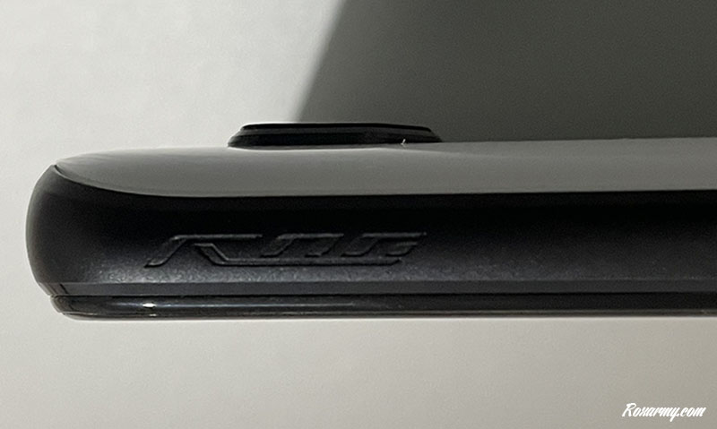 Le design du ROG Phone 5 persiste dans une sobriété qui ne renie en rien son ADN gaming. Au dos son logo en pointillé affiche grâce au système RGB Aura, 2 couleurs simultanément et bénéficie d’effets lumineux. Au bout d’un moment ses 239g pour 173mm de long 77mm de large et 9mm d’épaisseur se font bien sentir.