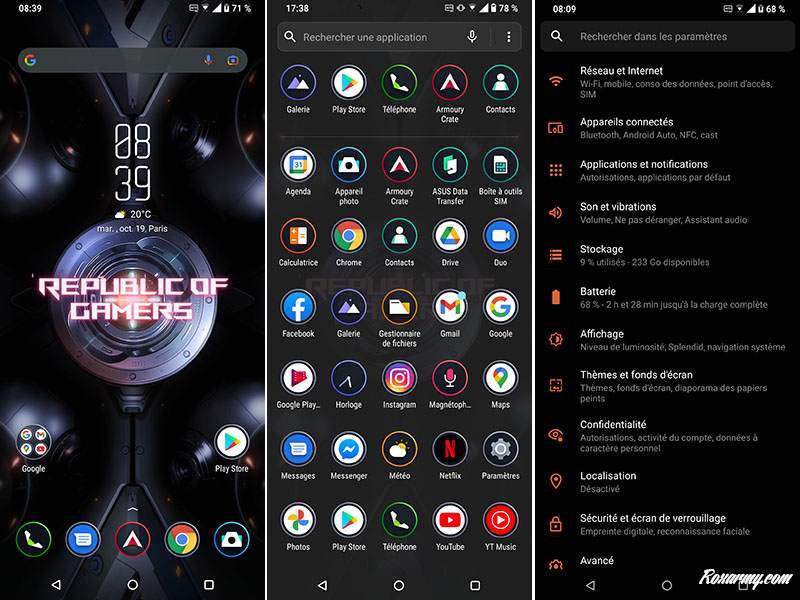 En plus de faire tourner comme un charme ROG UI la surcouche à Android 11, les huit cœurs, le processeur Adreno 660 et les 16 Go de mémoire sont la garantie d’une conséquente durée de vie même si l’impossibilité d’extension de stockage par carte SD est manifeste vu l’espace réservé aux 2 cartes SIM.