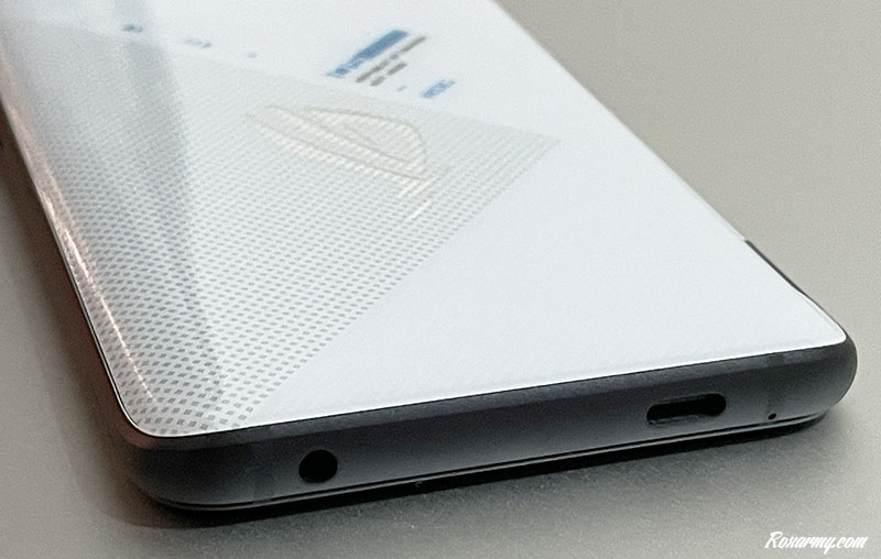 Malgré une double batterie de 3000 mAh pour une capacité totale de 6000 mAh portant l’autonomie à une journée et demie, la présence d’un port USB-C sur la tranche gauche à l’opposé de celle des Air Trigger est la bienvenue pour pouvoir jouer sans être gêné car à la longue le ROG Phone tend à sérieusement chauffer.