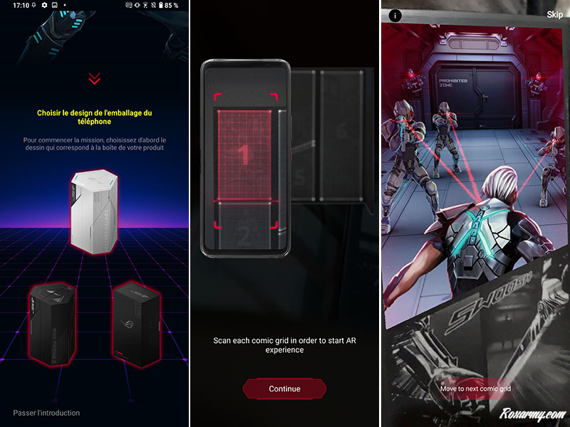 Au recto du couvercle figure la planche d’un manga avec en protagoniste Akira un samouraï post modern digne de Raiden dans Metal Gear Rising. Elle sert à activer des scènes en réalité augmentée pour introduire de manière ludique des caractéristiques propres au ROG Phone comme ses gâchettes intégrées Air trigger.