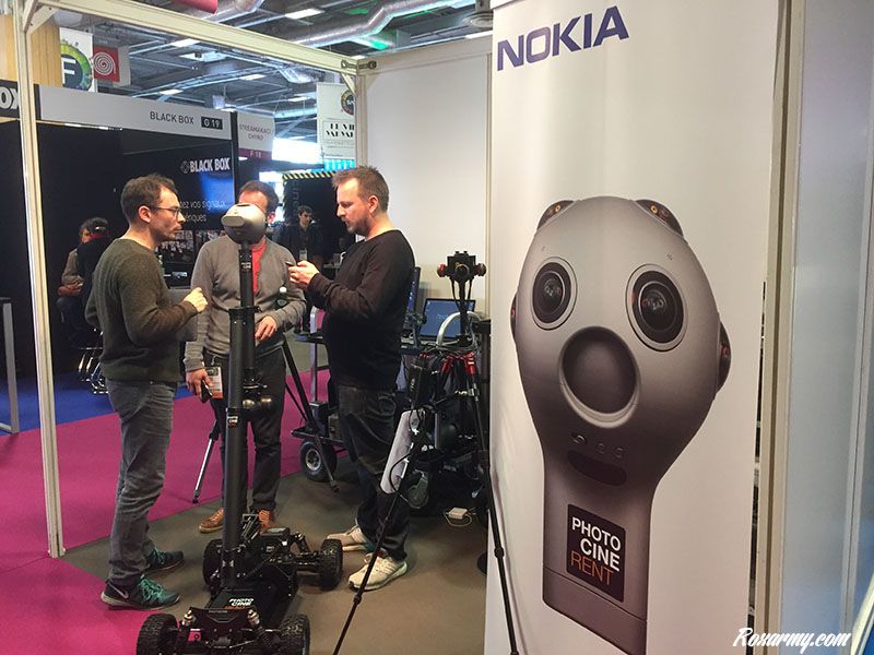 Mon tour d’horizon a commencé avec la présentation par PhotocineRent de la caméra OZO de Nokia. Pensée pour le cinéma et les applications VR cette sphère d’acquisition vidéo et audio dispose de 8 cameras 2k x 2k et de 8 micros pour une couverture à 360 x 180 degrés.