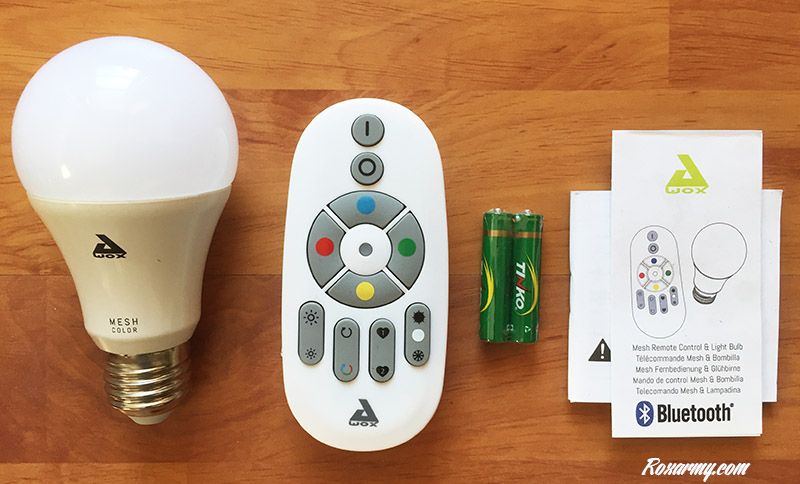 IMG_0095Cette prouesse technologique est possible grâce au Bluetooth contenu dans chaque ampoule et qui sert de relais pour en connecter d’autres dans un rayon de 30 mètres. Le kit qu’Awox m’a fait parvenir comprend une télécommande, 2 piles, une ampoule de 75 W, un guide d’utilisation et la garantie.