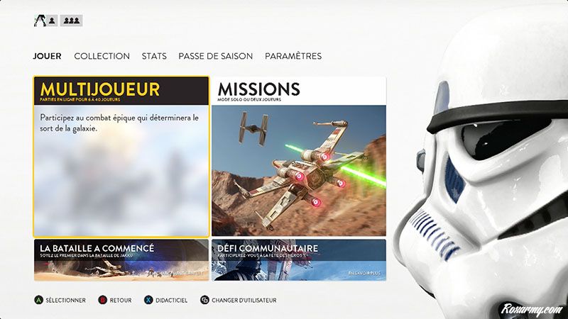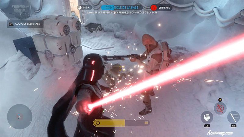 Jeu d’action en vue à la première ou à la 3ème personne, leur dernier-né est dépourvu de mode campagne mais comporte un mode multijoueur et des missions solos en des lieux emblématiques de la saga (Hoth, Endor, Tatooine, Sullust).