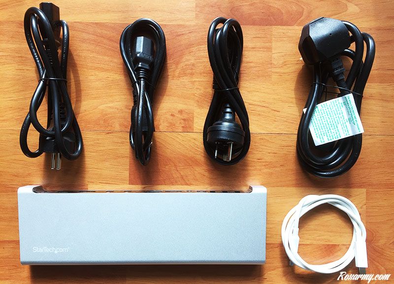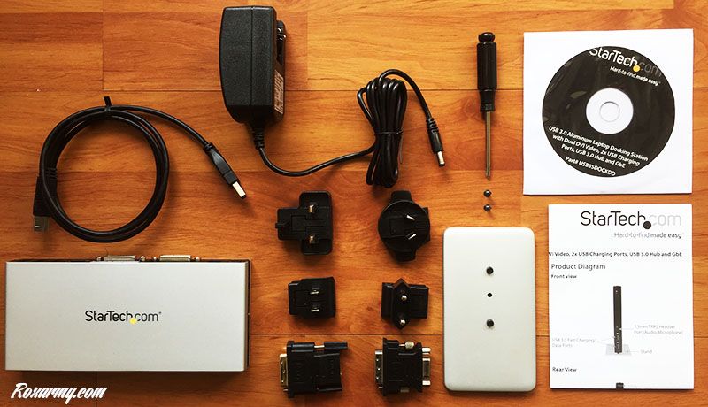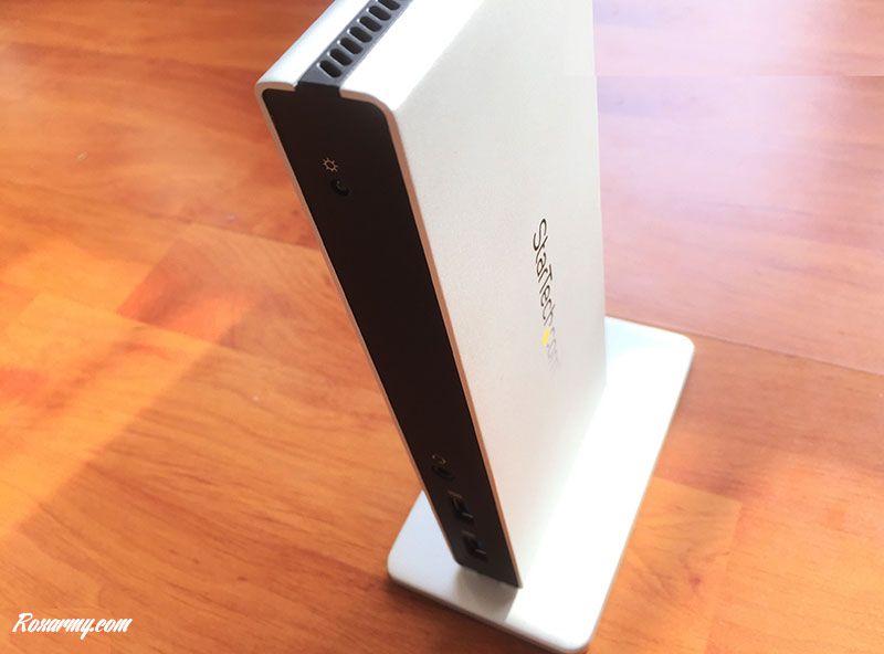 Star Tech propose également une station d’accueil à raccorder via un port USB 3 et alimentée par un adaptateur secteur. Elle est livrée avec 4 embouts électriques, un convertisseur DVI-I vers VGA, un autre DVI-D vers HDMI, un câble USB 3, un socle, un tournevis avec 2 vis, la documentation et un CD-Rom.