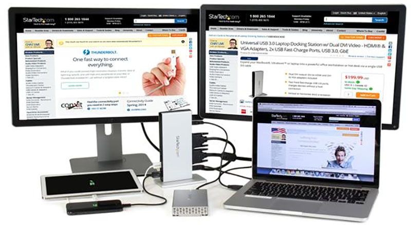 Son dernier MacBook ne possède ainsi qu’un port USB-C et une prise casque. Cette politique unilatérale ne crée pas seulement des mécontents. StarTech fabricant canadien qui a fait de l’interconnectivité sa spécialité propose des solutions pour répondre aux besoins des utilisateurs pris de court.