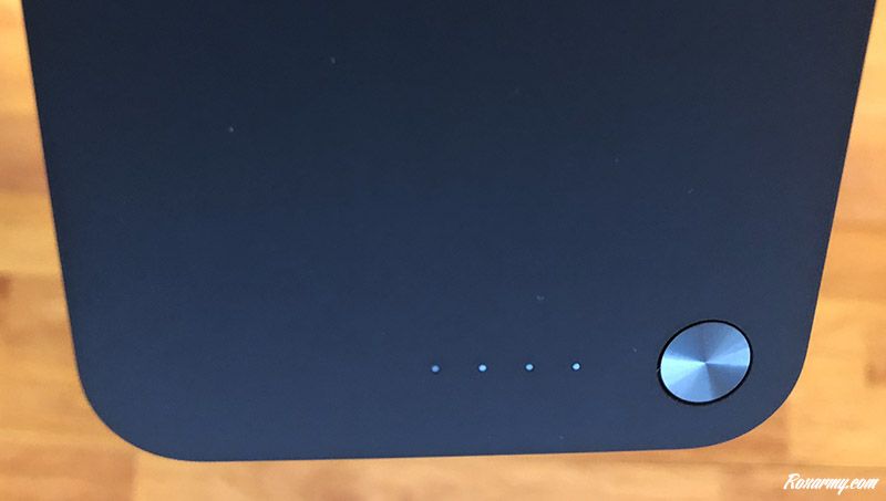 Si contrairement à la 10k, la BOOSTCHARGE Power Bank 20K perd la possibilité de charger simultanément 2 appareils USB-A, ces derniers ne sont pas oubliés puisqu’un port de ce type à 2,4 A pour une recharge rapide est présent. 4 heures sont nécessaires pour que les 4 LEDs indiquant le niveau de charge soit allumés. Presser le bouton situé à coté sert à savoir où on en est.