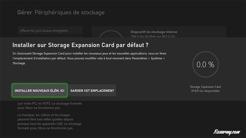 Aucune option de formatage n’est proposée, par défaut la carte est destinée à être tout de suite opérationnelle pour le stockage des jeux et des applications. L’interface de gestion des périphériques se comporte d’ailleurs exactement de la même façon que pour un disque dur externe relié à un port USB.