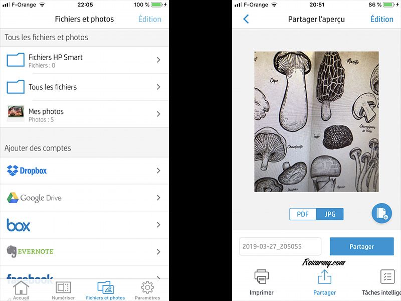 Pour contrebalancer le fait que la Tango n’intègre pas de scanner, HP a misé sur les capteurs photo des smarphones combinés à un traitement logiciel. La numérisation s’effectue donc via l’application HP Smart qui propose la création de documents à partager au format JPG ou en PDF incluant dans ce format le multi page.