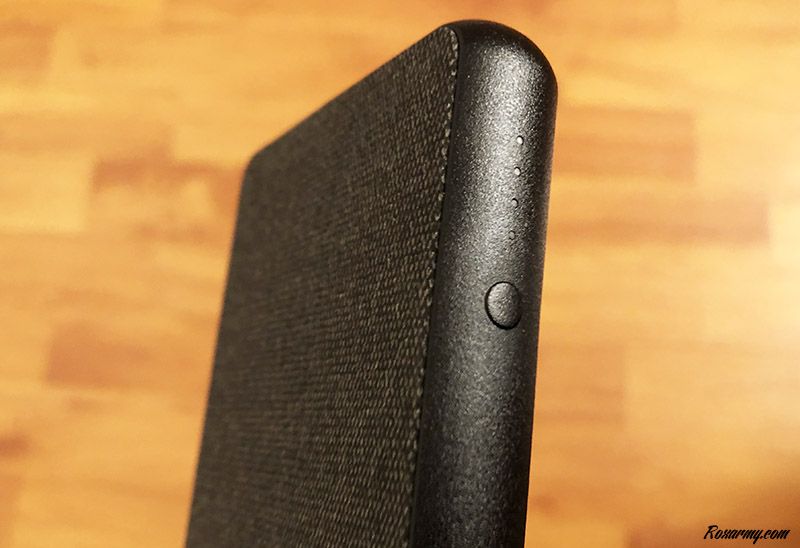 Sobre avec ses bords arrondis, le design rectangulaire de cette Powerstation plus est rehaussé coté recto par une finition textile grise agréable au toucher. Un rappel de la marque Mophie et de son logo y est discrètement effectué en bas à droite.