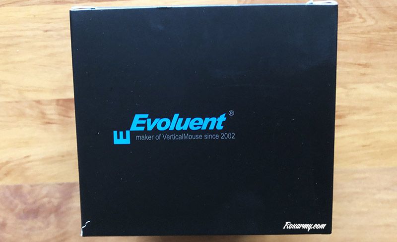 Le packaging en carton est extrêmement sobre avec sur un fond bleu marine aucun visuel. Seuls sont présents le logo d’Evoluent le fabricant et dans une police de caractères en italique la désignation commerciale du produit accompagnée du slogan indiquant que 2002 est l’année depuis laquelle la société américaine fait des souris verticales.