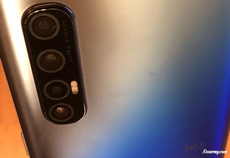 Le bloc arrière est composé de 4 capteurs, le principal à 48 MP, le téléobjectif à 13 MP, l’ultra grand angle à 8 MP et celui pour la profondeur et les effets bokeh à 2 MP.  Les enregistrements vidéo peuvent aller jusqu’à de la 4K à 30 fps, seuls ceux à 1080P 60 fps tirent parti de la technologie de stabilisation dénommée HIS.