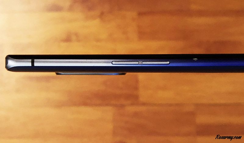 Le côté droit du smartphone accueille le bouton de mise sous tension et sur le gauche se trouvent les boutons d’ajustement de volume. Sous l’écran, le capteur d’empreintes se révèle particulièrement réactif. Sur la tranche du bas, l’emplacement pour carte SIM exclut toute possibilité d’extensions.