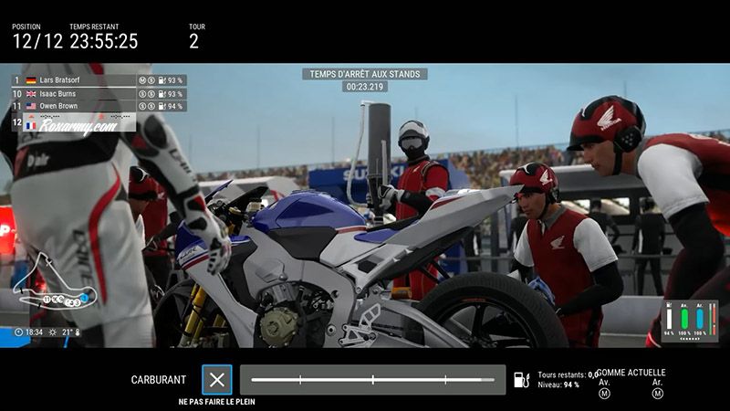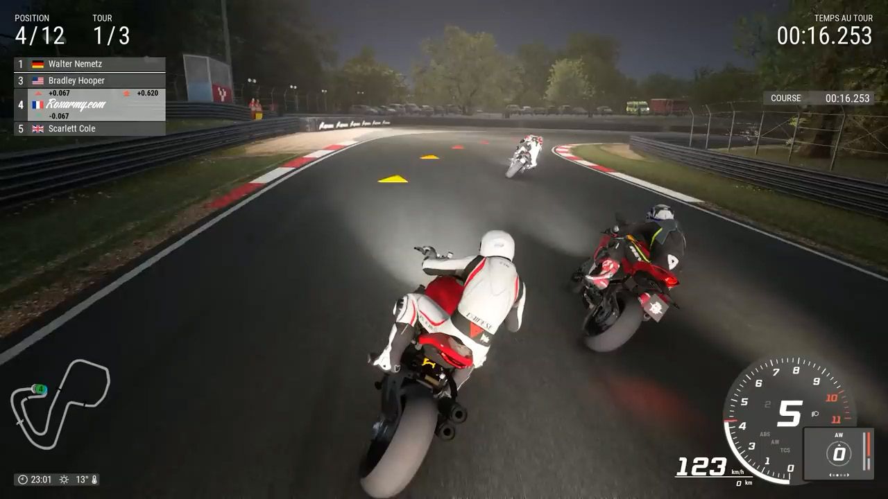 En plus du ravitaillement en essence, il faut désormais dans Ride 4 prendre en compte l’usure des pneus qui dépend à la fois du pilotage, des gommes choisies et de l’état des circuits. La compétition contre l’intelligence artificielle baptisée A.N.N.A s’avère particulièrement ardue surtout quand la difficulté est réglée à 120%.