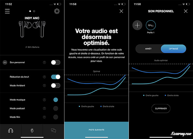 Le rendu sonore est toujours de bonne facture avec une appétence pour les basses que la personnalisation ou les 3 préréglages par usage permettent de modifier sur mobile. Plus utiles en commandes directes, l’activation des modes ambiant et suppression de bruit active peut aussi être lancée depuis l’application.