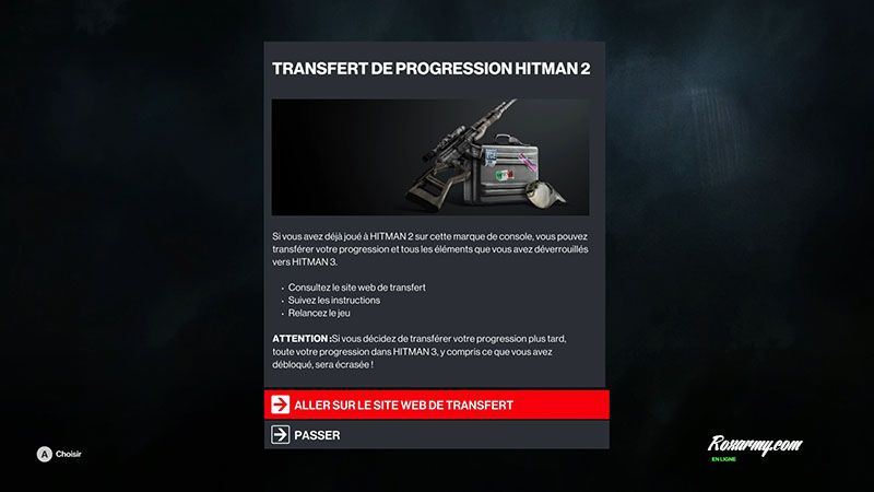 Il est possible de se lancer dans Hitman III sans avoir joué aux épisodes antérieurs. Pour comprendre l’intrigue générale des récapitulatifs sont disponibles sous forme de cinématiques. Io Interactive ne néglige pas non plus les joueurs qui ont suivi la saga puisqu’il leur est possible de transférer leur progression ainsi que tous les éléments déverrouillés vers le dernier opus.