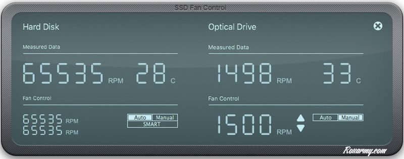 En plus d’être totalement silencieux le MX500 ne chauffe pas ainsi la sonde thermique présente dans le Mac mini devient totalement inutile. L’absence de firmware propriétaire installé sur les disques HGST utilisés par Apple provoque l’affolement du ventilateur principal Pour le calmer, l’application SSD Fan Control fait preuve d’une efficacité remarquable.
