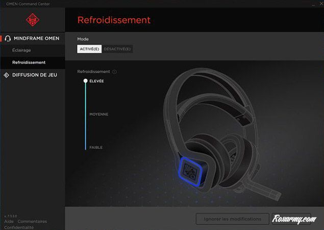 Mise au point par HP, cette technologie baptisée Frostcap évite aux oreilles de chauffer. Le froid généré est réglable sur 3 niveaux depuis l’application Centre de Commande Omen utilisable sous Windows 10 seulement. Le système profite aussi à l’isolation audio du MindFrame qui même passive s’avère satisfaisante.