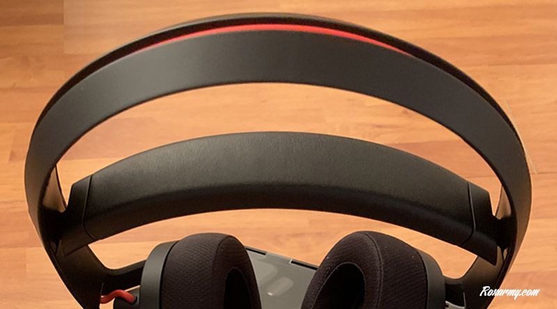 Pour un casque Gaming, le design du Mindframe est sobre, son retro éclairage RGB compris. Il demeure imposant et assez lourd avec ses 477 g alors qu’il est majoritairement constitué de plastique certes de qualité. Pour l’ajuster, un bandeau en simili cuir doux au toucher mais peu épais se situe sous l’arceau principal.
